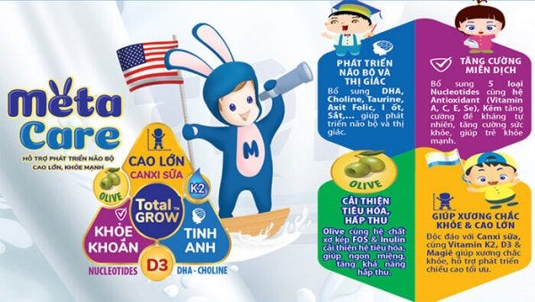 Sữa bột Meta Care là một sản phẩm dinh dưỡng nội địa Việt Nam được sản phẩm theo công thức thức TotalGROW chăm sóc toàn diện.