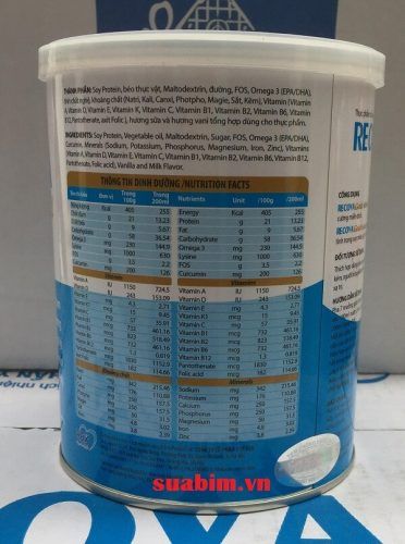 Recova là sữa đã được chứng nhận từ viện dinh dưỡng với thành phần giàu Protein, chất béo, năng lượng cao cũng như các thành phần đặc biệt khác đã mang lại hiệu quả tích cực đối với người sử dụng: