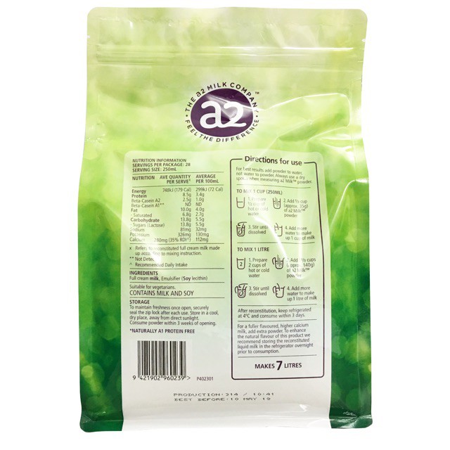 - Giới thiệu sữa tươi dạng bột A2 của Úc